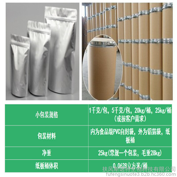 【包装】:协商或内用双层塑料袋,1公斤铝箔袋,25公斤纸板桶