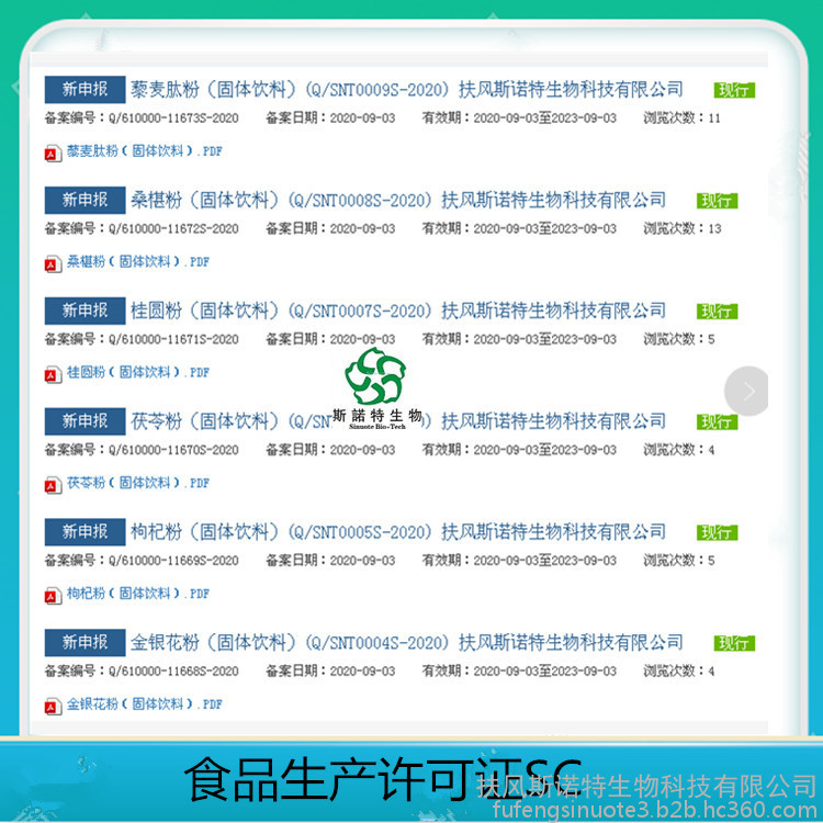 斯诺特生物建立了完备的原料供应,质量管理和生产销售体系,严格把控质量。自建原料基地500余亩,合作原料种植基地40000亩,从源头**产品的稳定和**供应。所有产品在标准化车间生产,洁净区包装,厂检并与国际第三方检测合作。
