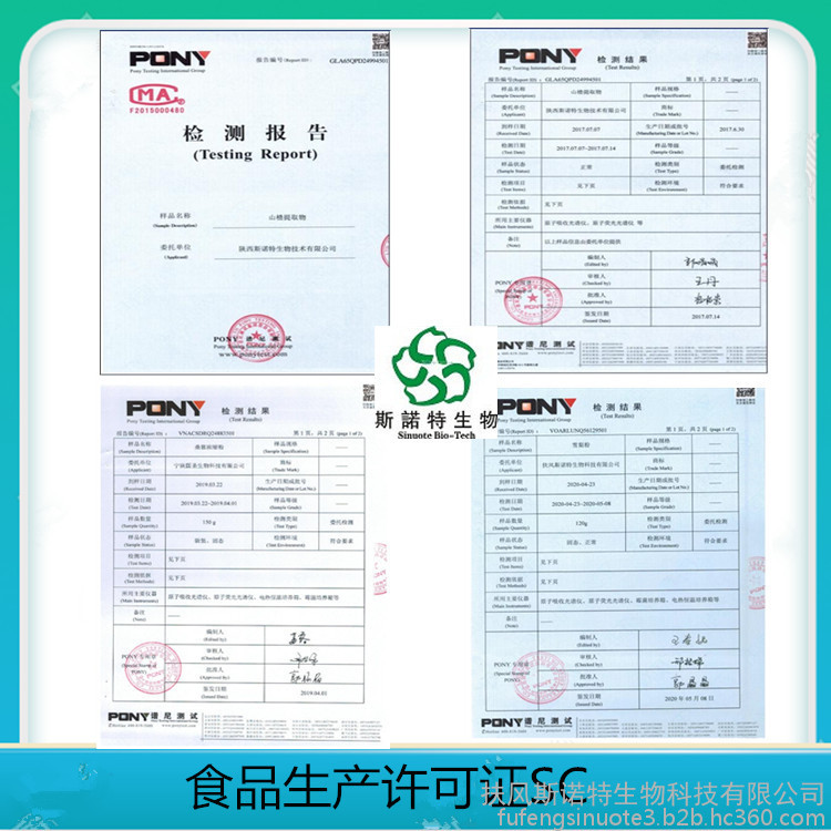 扶风斯诺特生物技术有限公司工厂位于陕西省宝鸡市扶风县绛帐镇扶风科技工业园,是一家专注于天然健康原料的研发生产销售一体的高新技术企业。公司严格执行质量控制标准,所有产品均按照相应企标和国标进行生产。从源头植物种植开始严把质量关。工厂主要生产设备有:多功能提取罐、单效外循环真空浓缩器、真空浓缩罐、醇沉灌、结晶灌、层析柱、离心机、高速管式过滤机、真空干燥箱、喷雾干燥塔、混合机等、所有设备均为不锈钢材质,符合食品生产GMP要求。
