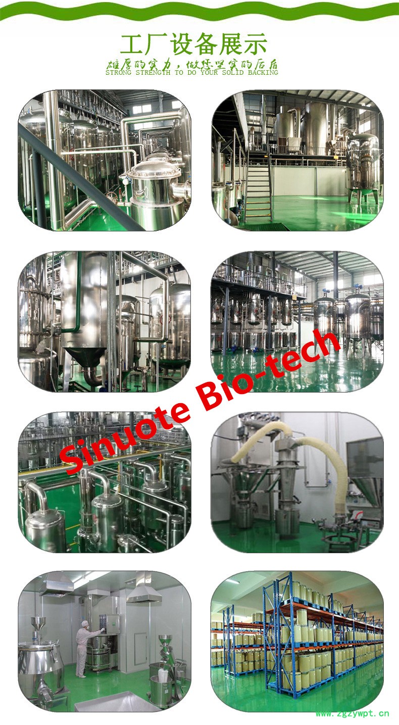 我厂专业生产提取物原料,采用 high quality 原材料进行生产。每个生产流程都严格把控,再确保每样产品都是合格后,方可出厂销售!客户的满意,就是我们一贯的追求!