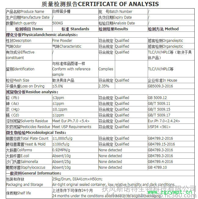 | 包装 | 25公斤/桶 |