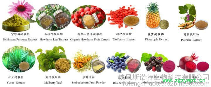 :灵芝提取物、云芝提取物、猴头菇提取物、姬松茸提取物、香菇提取物、灰树花提取物、桑黄提取物、樟芝提取物、虫草提取物、金针菇提取物、银耳提取物、平菇提取物、茶树菇提取物、竹叶黄酮、竹叶多糖等。