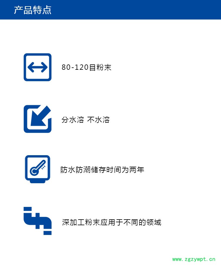 粉末颗粒细小,流动性佳,细腻均匀、不易分层