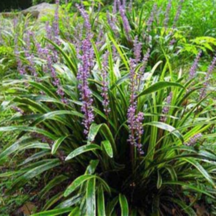 【植物简介】 麦冬(学名:Ophiopogon japonicus (Linn. f.) Ker-Gawl.)百合科沿阶草属多年生常绿草本植物,根较粗,中间或近末端常膨大成椭圆形或纺锤形的小块根,茎很短,叶基生成丛,禾叶状,苞片披针形,先端渐尖,种子球形,花期5-8月,果期8-9月。麦冬原产中国,日本、越南、印度也有分布。中国南方等地均有栽培。生于海拔2000米以下的山坡阴湿处、林下或溪旁。