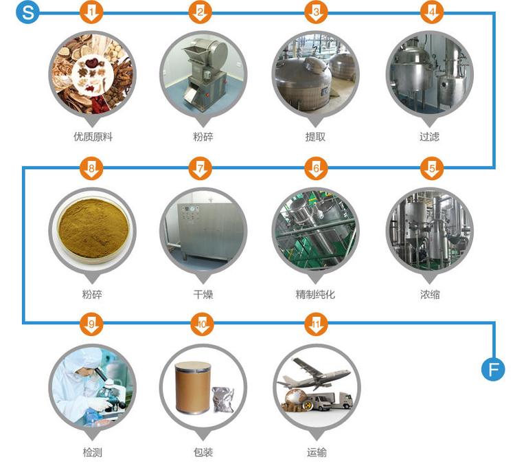 本公司还有:丁香提取物、八角茴香提取物、八角茴香提取物、小茴香提取物、小蓟提取物、山药提取物、山楂提取物、马齿苋提取物、乌梢蛇提取物、乌梅提取物、木瓜提取物、火麻仁提取物、代代花提取物、玉竹提取物、甘草提取物、白芷提取物、白果提取物、白扁豆提取物、白扁豆花提取物、龙眼肉(桂圆)提取物、决明子提取物、百合提取物、肉豆蔻提取物、肉桂提取物、余甘子提取物、佛手提取物、杏仁(甜、苦)提取物、沙棘提取物、牡蛎提取物、芡实提取物、花椒提取物、赤小豆提取物、阿胶提取物、鸡内金提取物、麦芽提取物、昆布提取物、枣(大枣、酸枣、黑枣)提取物、罗汉果提取物、郁李仁提取物、金银花提取物、青果提取物、鱼腥草提取物、姜(生姜、干姜)提取物、枳椇子提取物、枸杞子提取物、栀子提取物、砂仁提取物、胖大海提取物、茯苓提取物、香橼提取物、香薷提取物、桃仁提取物、桑叶提取物、桑椹提取物、桔红提取物、桔梗提取物、益智仁提取物、荷叶提取物、莱菔子提取物、莲子提取物、高良姜提取物、淡竹叶提取物、淡豆豉提取物、菊花提取物、菊苣提取物、黄芥子提取物、黄精提取物、紫苏提取物、紫苏籽提取物、葛根提取物、黑芝麻提取物、黑胡椒提取物、槐米提取物、槐花提取物、蒲公英提取物、蜂蜜提取物、榧子提取物、酸枣仁提取物、鲜白茅根提取物、鲜芦根提取物、蝮蛇提取物、橘皮提取物、薄荷提取物、薏苡仁提取物、薤白提取物、覆盆子提取物等