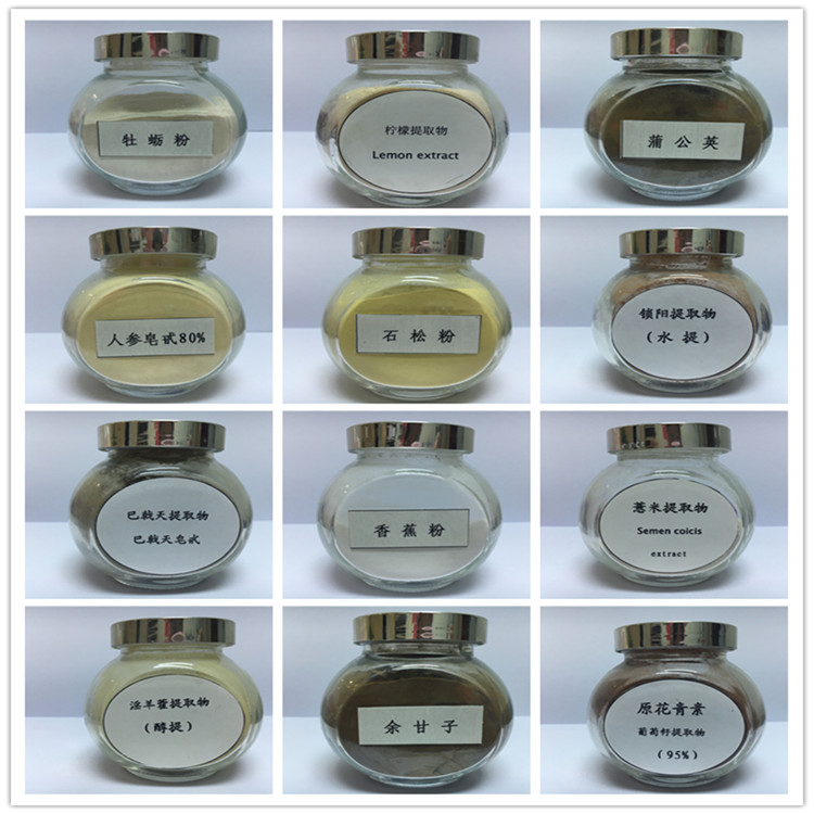 本公司供应提取物类产品:丹参提取物、淡竹叶提取物、当归提取物、地肤子提取物、杜仲提取物、煅龙骨提取物、莪术提取物、非洲仙人掌提取物、佛手提取物、茯苓皮提取物、附片提取物、茯神提取物、浮小麦提取物、公丁香提取物、桂花提取物、龟板提取物、贯众提取物、仙人掌提取物、海金沙提取物、海藻提取物、黑豆提取物、黑木耳提取物、黑芝麻提取物、红花提取物、琥珀提取物、滑石提取物、黄精提取物、黄连提取物、鸡内金提取物、姬松茸提取物、建曲提取物、降香提取物、韭菜籽提取物、橘核提取物、橘红提取物、橘叶提取物、款冬花提取物、昆布提取物、葵花籽提取物、莲肉提取物、龙胆草提取物、龙葵提取物、漏芦提取物、路路通提取物、芦荟提取物、芦荟粉提取物、鹿衔草提取物、鹿茸提取物、大枣提取物、薏仁提取物、紫苏提取物、沙棘提取物等