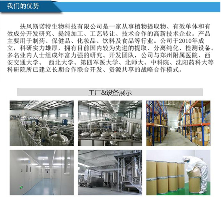 我厂专业生产提取物原料,采用原材料进行生产。每个生产流程都严格把控,再确保每样产品都是合格后,方可出厂销售!客户的满意**是我们一贯的追求!
