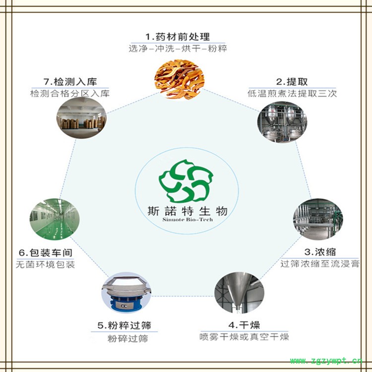 【提取制法】:将原料用水抽提,浓缩萃取、浓缩、干燥制成