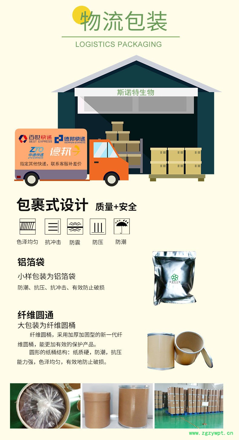 扶风斯诺特生物是一家专业生产植物提取物的厂家。秉承“正直、天然、可靠、创新”的企业追求,“客户满意、团队协作、激情、创新、诚信、敬业”的企业价值观,致力于天然成分原料的研究、创新,打造精致的天然成分原料及其应用方案,为您提供好原料,出厂每批次产品都带该批次出厂检测报告原件。
