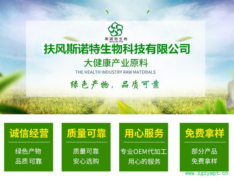 扶风斯诺特生物科技有限公司是一家专业从事天然植物有效单体和有效成分开发研究、提纯加工、工艺转让,技术合作的高新技术企业,产品主要有药食同源粉、新资源食品原料粉、动植物提取物、果蔬粉、五谷杂粮粉、小分子肽、各种植物单体(多糖、黄酮、皂甙、多酚),产品主要用于食品、饮料、保健酒、保健品、化妆品、特医食品、特膳食品等行业。