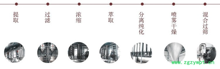 【生产工艺】原料、清洗原料、3遍提取、浓缩、喷雾干燥成粉、过筛、包装。