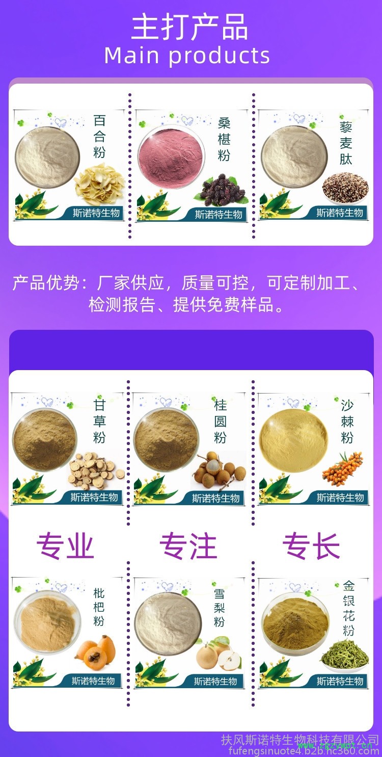 所购原料,不满意一个月内无条件退换货。厂多年致力于提取行业,现有多种植物提取物&果蔬生粉&植物提取液等.