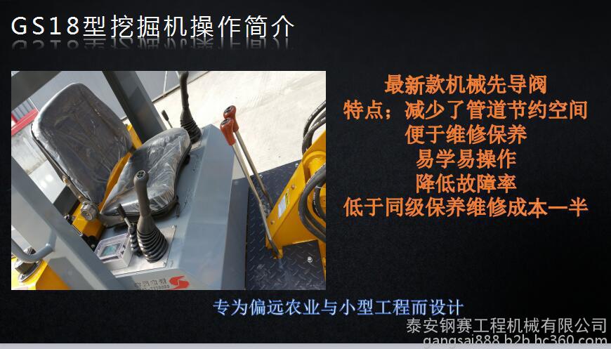 小型挖掘机特点,牵引力大,自重大于同级别,马力大于同级一倍,挖掘旋转速度快,可侧挖。