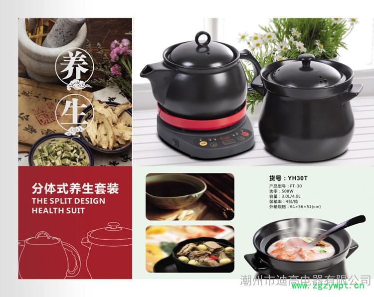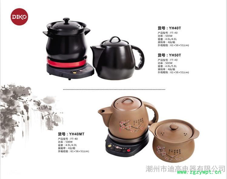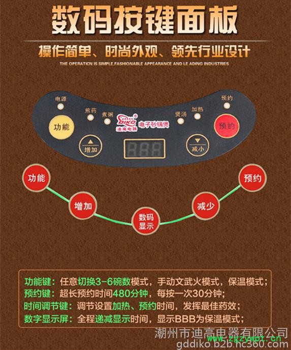 潮州市迪高电器有限公司位于中国瓷都–潮州.是一家集设计、开发、生产于一体的企业,由具有20多年家电、五金产品生产经验的团队组成.致力于生产高品质产品.目前精工制作有:电子煎药壶,分体砂锅煲,不锈钢快速壶等系列产品,不懈的努力和诚实、求实、创新是我们的企业精神。企业本着“高品质,适中价位”的发展思路,秉承“质量是企业的生命”的经营理念,产品通过**3C强制认证。我们以质量立厂、客户至上、诚信经营,努力为客户提供满意的产品。 竭诚欢迎广大的新老客户前来洽谈、订货,携手合作,”您试一试**行、我们拼一拼**共赢”,共创辉煌!!!