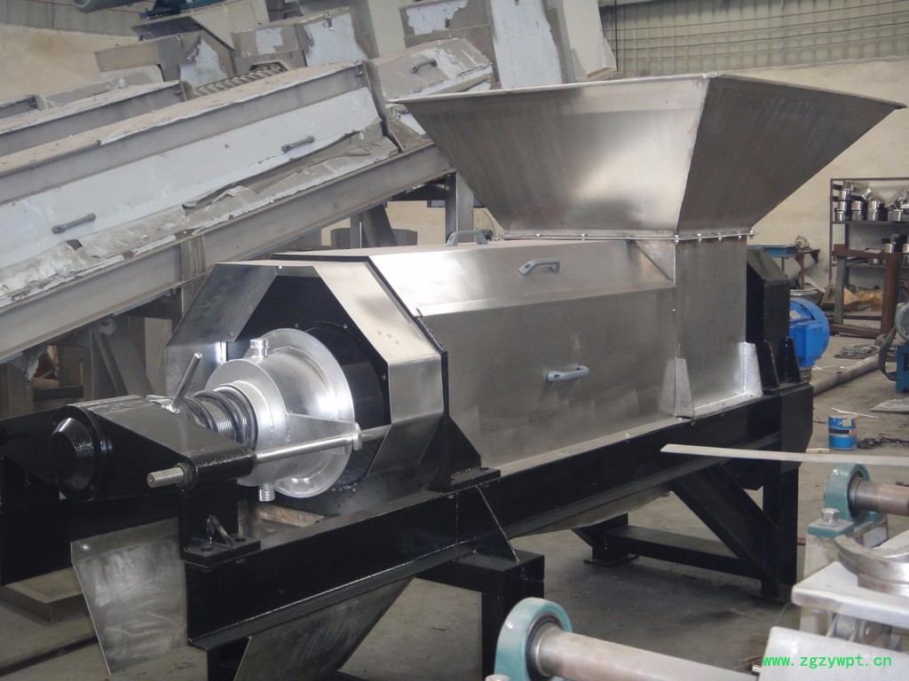 应用广泛,特别适合浆果的榨汁、各种光滑、流体物料的脱水,为了减少螺旋叶片的磨损和网孔的堵塞,螺旋外径和筛网要有**小的间隙,这样**把将要堵塞网孔的物料给刮走,所以该脱水机不易堵塞连续运行。相对于带式脱水机(易堵塞,需要大量的水清洗,造成二次污染;网带易坏),离心脱水机,板框式脱水机(易堵塞,需要使用高压泵;难以实现连续自动运行),该螺旋压榨机能自我清洗,不堵塞、无噪音和振动。所有与物料接触地方均为不锈钢材质。但每班停机后应及时清理筛网,以免造成物料干结堵塞滤网。