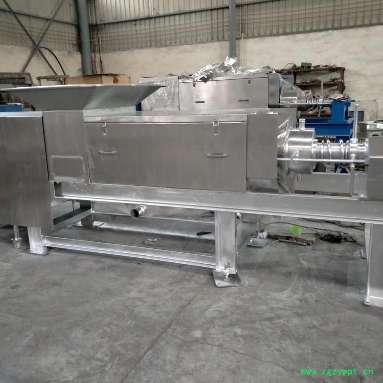 待处理的物料经过泵等工具均匀地输送到螺旋压榨机进料口,经过螺旋叶片挤压和筛网的过滤,水或者汁液经过筛网流到机器下面的接水盘收集后经过管路接走。分离出的固体从后端排出。不同的物料选用不同的筛网(孔径0.1-1mm)、不同的螺旋转速以及适当调整出渣口干湿调节装置来达到**的产量以及渣的干湿程度(或者说通过调整出渣口干湿调节装置以及适当螺旋转速来达到脱水效果和产量的**配合)------含纤维越高,产量越大,脱水后的渣干度也越高;筛网孔径越小,处理的物料的颗粒直径也越小。