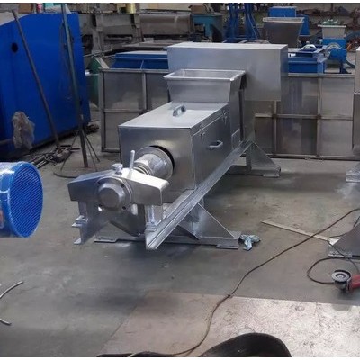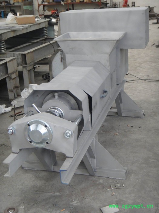 待处理的物料经过泵等工具均匀地输送到螺旋压榨机进料口,经过螺旋叶片挤压和筛网的过滤,水或者汁液经过筛网流到机器下面的接水盘收集后经过管路接走。分离出的固体从后端排出。不同的物料选用不同的筛网(孔径0.1-1mm)、不同的螺旋转速以及适当调整出渣口干湿调节装置来达到**的产量以及渣的干湿程度(或者说通过调整出渣口干湿调节装置以及适当螺旋转速来达到脱水效果和产量的**配合)------含纤维越高,产量越大,脱水后的渣干度也越高;筛网孔径越小,处理的物料的颗粒直径也越小。
