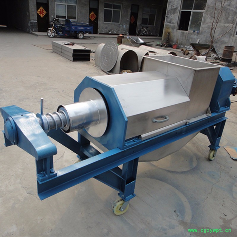 双螺旋压榨机为可连续式双螺旋压榨机,本机用于含有一定纤维质或有粘性的其宏观世界物料的固液分离作业.如发酵后的葡萄皮渣、生姜、菠菜、橡胶、中草药、冬枣、餐厨垃圾处理等含一定纤维的水果和蔬菜提汁,也用于除过枝或含少量小枝的沙棘果的连续榨汁,其筛孔专门按沙棘子的大小特殊制造的。