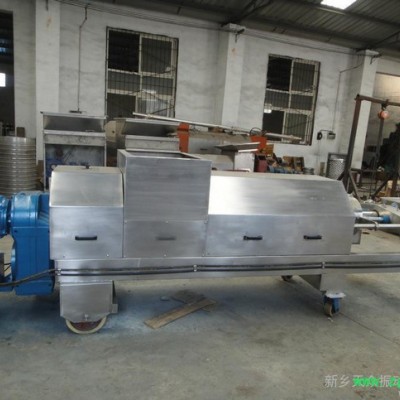 双螺旋压榨机为可连续式双螺旋压榨机,本机用于含有一定纤维质或有粘性的其宏观世界物料的固液分离作业.如发酵后的葡萄皮渣、生姜、菠菜、橡胶、中草药、冬枣等含一定纤维的水果和蔬菜提汁,也用于除过枝或含少量小枝的沙棘果的连续榨汁,其筛孔专门按沙棘子的大小特殊制造的。