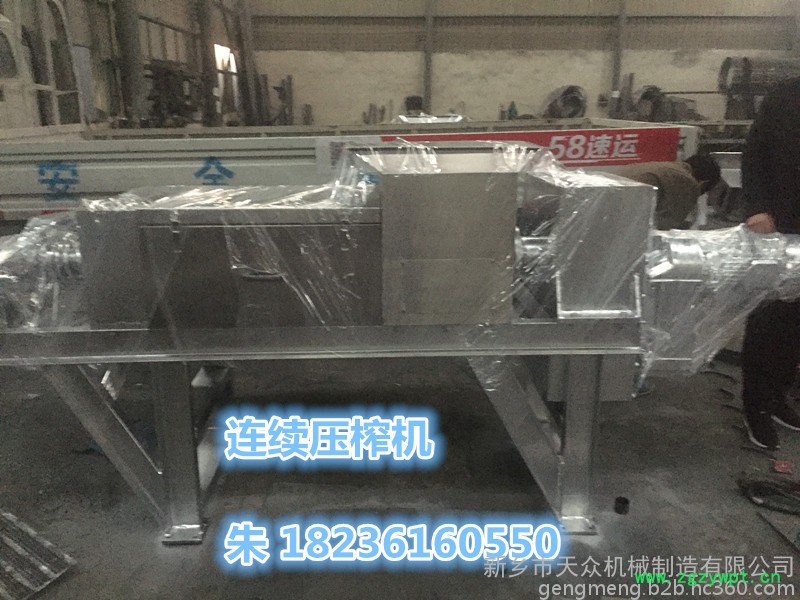 待处理的物料经过泵等工具均匀地输送到螺旋压榨机进料口,经过螺旋叶片挤压和筛网的过滤,水或者汁液经过筛网流到机器下面的接水盘收集后经过管路接走。分离出的固体从后端排出。不同的物料选用不同的筛网(孔径0.1-1mm)、不同的螺旋转速以及适当调整出渣口干湿调节装置来达到**的产量以及渣的干湿程度(或者说通过调整出渣口干湿调节装置以及适当螺旋转速来达到脱水效果和产量的**配合)------含纤维越高,产量越大,脱水后的渣干度也越高;筛网孔径越小,处理的物料的颗粒直径也越小。