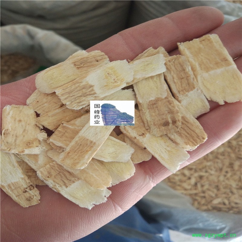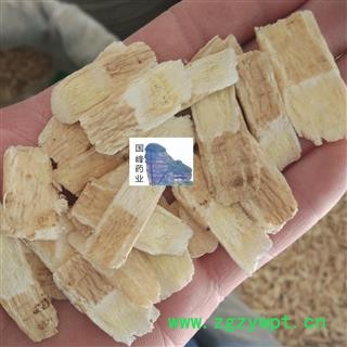 性状:本品呈斜片,表面淡棕黄色,断面纤维性强,并显粉性,皮部黄白色,气微,味微甜,嚼之微有豆腥味。无硫。