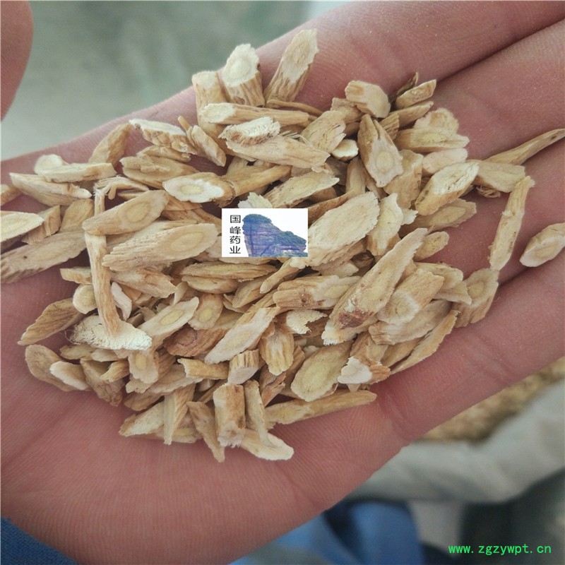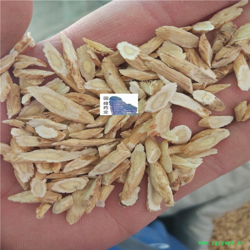 性状:本品呈斜片,表面淡棕黄色,断面纤维性强,并显粉性,皮部黄白色,气微,味微甜,嚼之微有豆腥味。无硫。