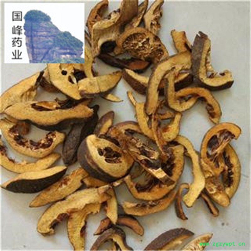 【规 格 描 述】 麸炒杂枳壳片,为不规则弧状条形薄片,外表面颜色褐绿色,