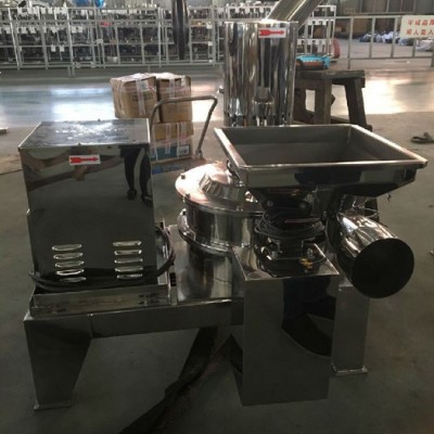 江阴高宏生产的WFJ-15/30/60型超微粉碎机组主要适合于粉碎细度在80-400目、产量较大的粉碎需求,非常适合药厂、食品厂、化工厂的高精度粉碎要求,粉碎细度可随意调节。该粉碎机组主要由主机、辅机、电控箱三个部分组成,设计紧凑,结构合理,属风选式、无筛网。超微粉碎机组整机都由**不锈钢生产制造而成。机内装有分级机构,能使粉碎、分级一次完成。负压输送使粉碎作业时机腔内产生的热量源源不断地排出,故也适应于热敏性物料的粉碎。本机适用范围广,生产过程连续进行,出料粒度可调。