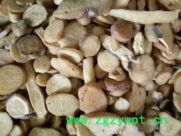 性状颜色:表皮灰白色 断面灰白色,直径0.5-1.5厘米,厚度0.3厘米 占总货80%, 较小颗粒状20%左右
