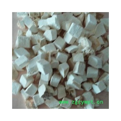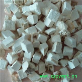 药材性状:0.7cm-1cm正方体颗粒,气微,味淡,微酸,嚼之有丝