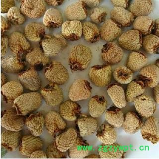 性状: 本品为聚合果,由多数小核果聚合而成,呈圆锥形或扁圆锥形,高0.6~1.3cm,直径0.5~1.2cm。表面黄绿色或淡棕色,顶端钝圆,基部中心凹入。宿萼棕褐色,下有果梗痕。小果易剥落,每个小果呈半月形,背面密被灰白色茸毛,两侧有明显的网纹,腹部有突起的棱线。体轻,质硬。气微,味微酸涩。