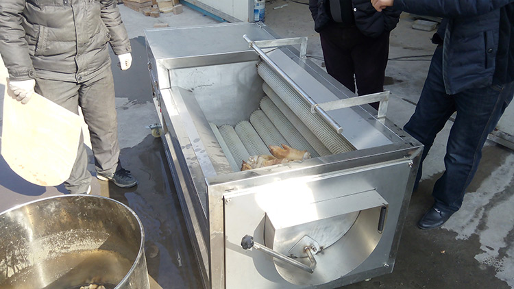 毛刷清洗脱皮机主要由电机、变速器、毛棍组等构成,是我厂吸取了国内外对根薯类加工机械的特点设计制造的