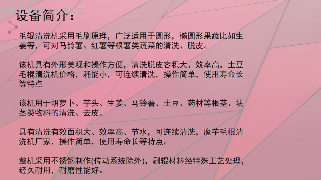 | 用途 | 果蔬清洗加工 |