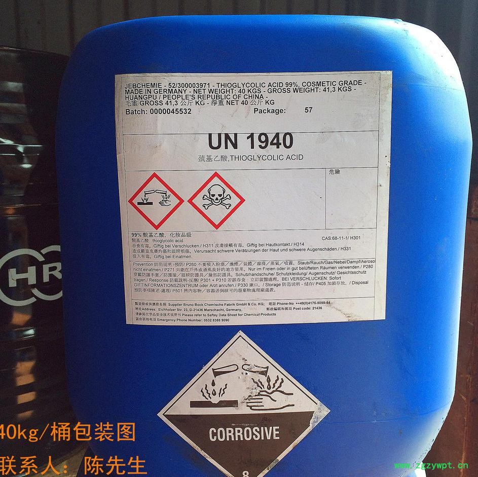 1.用于制作环氧树脂,双酚A的催化剂,是日用化妆品冷烫精及脱毛剂的主要原料,也可用作合成PVC透明塑料和有机锑,有机锡的热稳定剂的基础原料。其试剂产品是检验铁,钼,银,锡等金属离子的灵敏试剂。选矿上为硫化铜及硫化铁矿物的抑制剂。在石油化学工业和铁路部门,用于设备及铁轨的清洗除锈。 2.其铵盐和钠盐主要用作卷发剂、钙盐可用做脱毛剂、聚氯乙烯低毒或无毒稳定剂、聚合反应的引发剂、加速剂及链转移剂、金属表面处理剂。此外,巯基乙酸是检定铁、钼、铝、锡等的敏感试剂;也可作为聚丙烯加工成型时的结晶成核剂以及涂料、纤维的改性剂、毛毯速理剂。聚氯乙烯、橡胶的稳定剂原料、冷烫发用药剂、医药中间体。 3.用作光度法测定钼、铼和铁等的显色剂,并用作配合掩蔽剂。其盐还用于配制卷发冷烫剂和脱毛剂。 4.脱毛剂。巯基乙酸盐在较强碱性下,涂在皮肤上能进行快速脱毛。巯基乙酸可用于美容、临床手术前及动物实验时的脱毛**的是巯基乙酸的钙盐**pH值为11.5**有效含量为:5%巯基乙酸,7%钙盐。 5.金属表面处理剂。添加极少量的巯基乙酸即能改进金属清洗剂和浸渍液的清洗效果,并能抑制被处理金属表面的腐蚀,故常用于金属的精密加工中的防锈剂。这种效果在很广泛的ph值范围内均很显著。含巯基乙酸的多组分清洗-防锈液可用于汽车冷却系统的清洗,pH值为10.6。巯基乙酸的十六烷基酯可抛光或清洗银制品,不会使银器表面失去光泽。 6.聚氯乙烯低毒或无毒稳定剂。巯基乙酸辛锡酸、甲锡酯、辛酯、2-乙基己酯、甲氧基丁酯、乙氧基乙酯等具有低毒与无毒性,经美国食品与药物管理局批准,上述酯类可作为低毒无毒稳定剂。可用于聚氯乙烯上水管道、水泵等产品的加工,食品包装,食品加工厂的设备管道,亦可用于化妆品厂及制药厂,且这类稳定剂使产品透明性和热稳定性均有提高。此外,本品是检定铁、钼、铅、锡等的敏感试剂。还可用作纤维改性剂、毛毯整理剂。 7.用作测定铁的试剂及稳定剂,用于药水、烫发水制造等。 8.作为石油勘探缓蚀剂。巯基乙酸可以一种可作为嗅盐完井液的优良缓蚀剂,在石油勘探钻探高压井时,为了保护油气层,减少对地层的伤害,需使用溴化物的无固相完井液,这些盐的浓溶液具有很强的腐蚀性,并且随温度的升高腐蚀性加剧。在高温下抑制盐水腐蚀的缓蚀剂只有含硫化合物,巯基乙酸盐在一定温度下与金属发生化学反应,形成一层致密的FeS保护膜,起到了缓蚀作用。