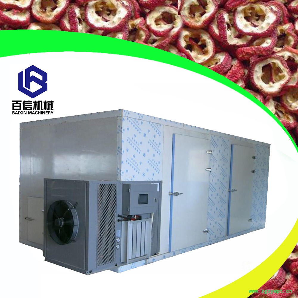 百信山楂片烘干机是一种热量提升装置,空气能热泵烘干机组利用逆卡诺原理,从周围环境中吸取热量,并把它传递给被加热的对象(温度较高的物体),主要应用于食品,药材,木材,农副产品,工业品等的烘干脱水过程。