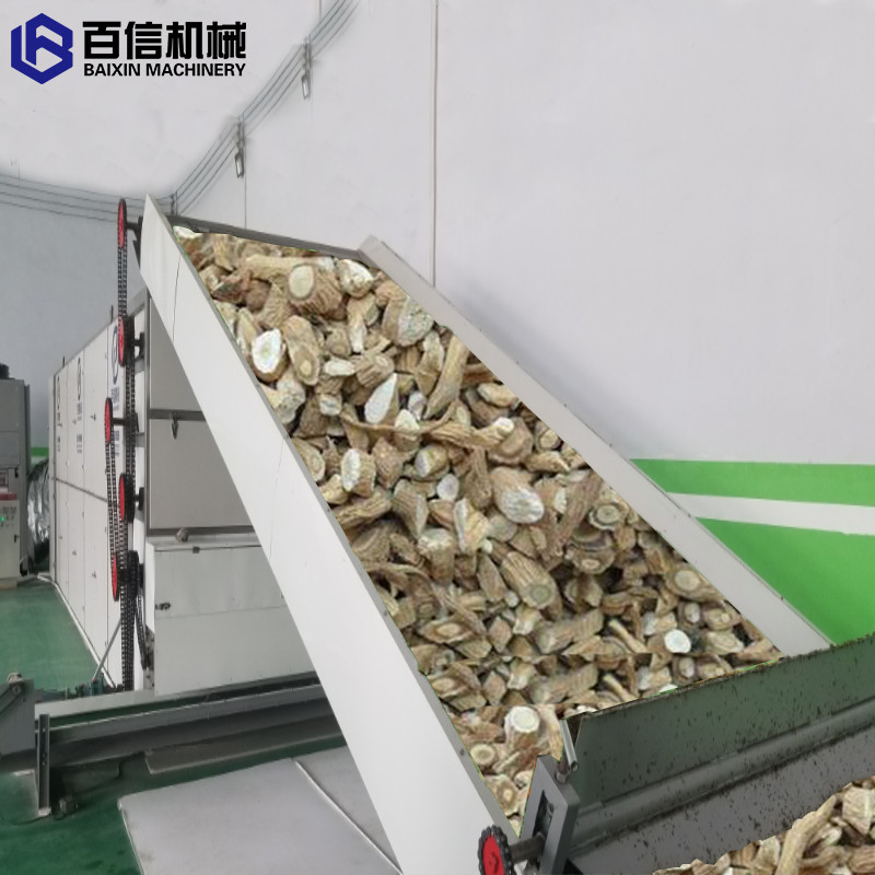 板蓝根烘干机是一种连续式生产的干燥设备,主要加热方式有电加热、蒸汽加热、热风加热、。其主要原理是将物料均匀的平铺在网带上,由传动装置拖动在干燥机内往返移动,热风在物料间穿流而过,水蒸气从排湿孔中排出,从而达到干燥的目的。