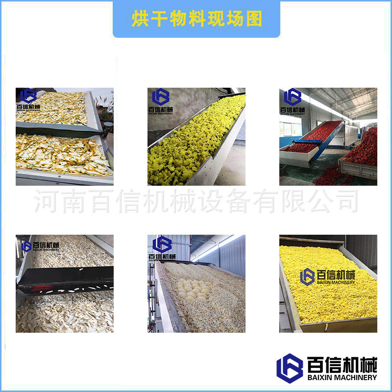 百信多层连续式烘干机脱水干燥迅速, 操作方便,效率运行。能满足大批量连续生产的需求,网带式干燥设备广泛应用于食品(如面条、面皮)、干果(大枣、巴旦木、腰果、开心果)、花茶(玫瑰花、山药、金银花、山楂花)、农副产品(如玉米、山药烘干袪潮)、脱水蔬菜(如大蒜、山药、山药、辣根、洋葱、白菜干、生姜、小香葱、辣根、菠菜)、瓜果(如山药、薯片、山药、葡萄干、哈密瓜)、中草药、(连翘、黄蜀葵、枸杞、)水产品、土特产品、饲料及化工原料等加工之片状、条状、块状和颗粒状物料的脱水干燥作业。