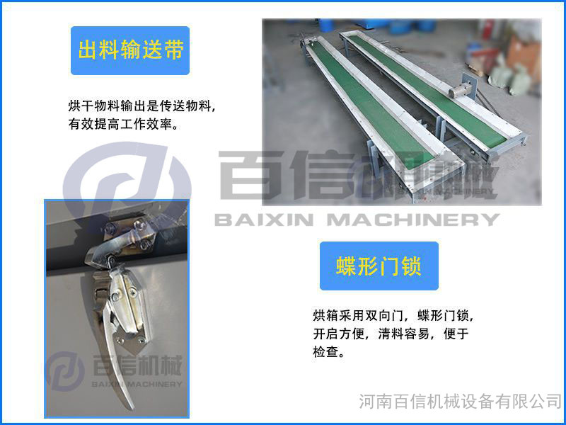 2、烘箱采用双向门,以利于检查,拆卸机件,开启方便,清料容易。