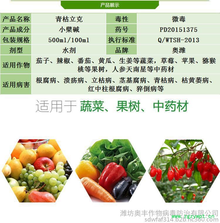 | 生产厂家 | 潍坊奥丰作物病毒防治有限公司 |