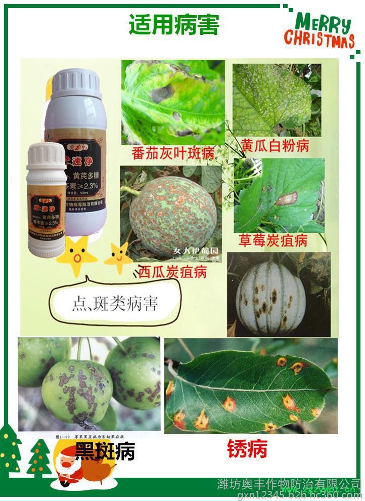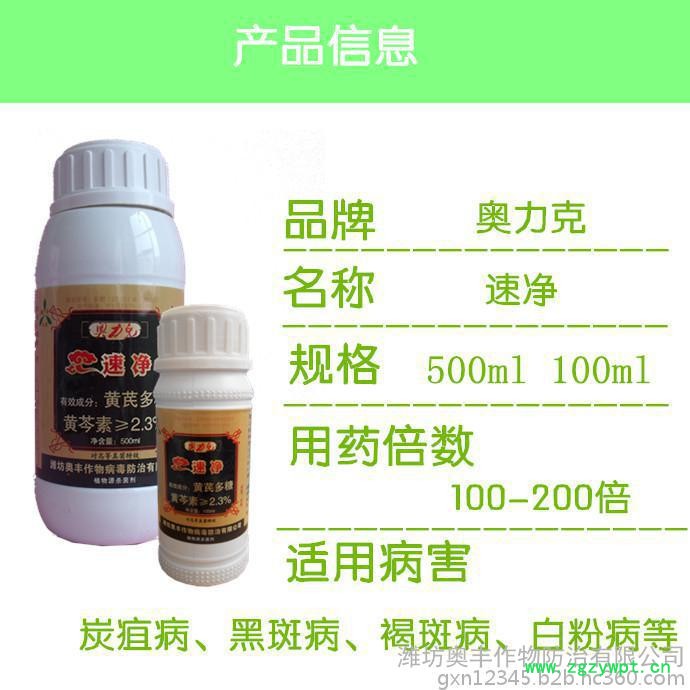 《奥力克—速净》:纯中药制剂,主治白粉病、叶斑病(也叫黑斑病、斑点病)、黑星病、炭疽病、锈病等。50倍以上使用无药害,有杀菌、复壮的作用;无抗药性,能连续使用,累积效果显著。