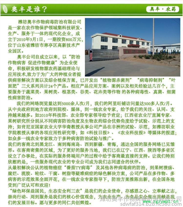 | 生产厂家 | 潍坊奥丰作物病毒防治有限公司 |
