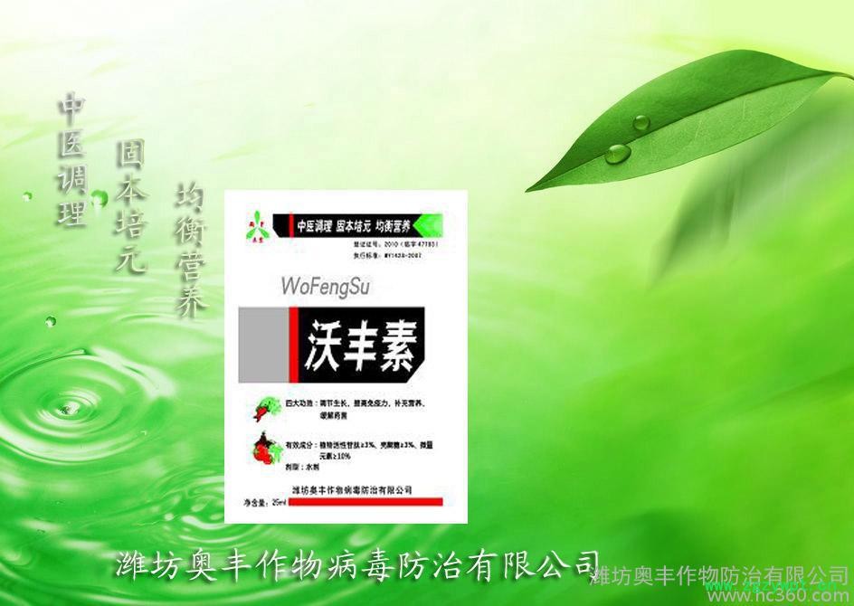 《沃丰素》:内含腐植酸、多糖、微量元素锌、硼等,补充作物营养,提高光合速率,增强株体免疫力,增加产量,改善品质。