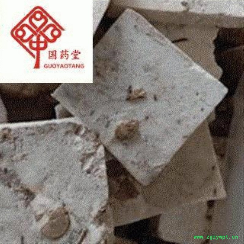 性状颜色:成品以足干,去净外皮,成正方形块,厚薄均匀,白色者为优质