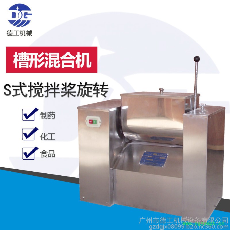 3、本机为卧式槽型单桨混合机,主要用于制药工业中不同比例的干性或湿性粉状物料的均匀混合,并且在混合过程中不产生物料的溶解挥发和变质。