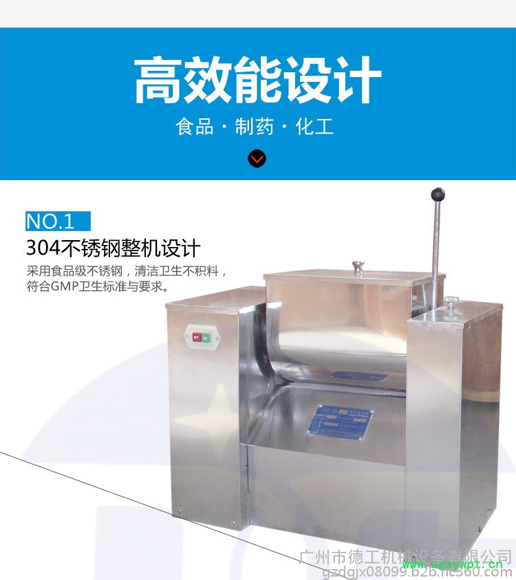 1、不锈钢制造,有良好的耐腐蚀性,能保持混合物料的质量和清洁,不致变质、变色。