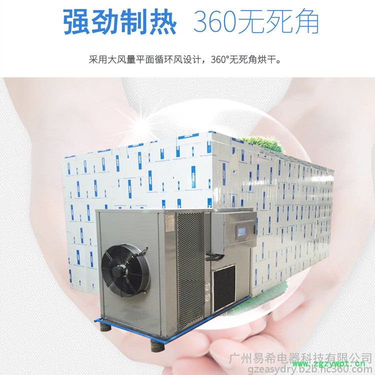依靠电能吸收空气中的免费热量并将其转移到烘干房内(输入1度电能量能产生4度电热能),实现烘干房温度提高,配合相应的除湿设备实现物料的干燥。