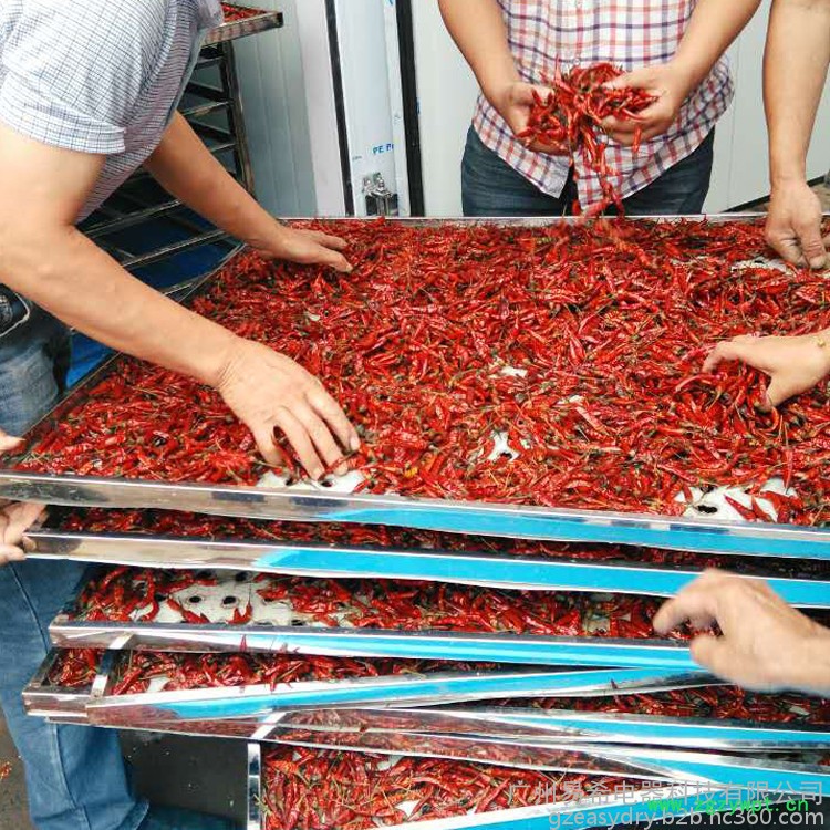 易希采用高温热泵烘干除湿技术,烘干辣椒成色好,品质高,成本低,处理量大。