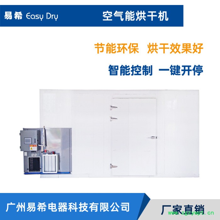 依靠电能吸收空气中的免费热量并将其转移到烘干房内(输入1度电能量能产生4度电热能),实现烘干房温度提高,配合相应的除湿设备实现物料的干燥。
