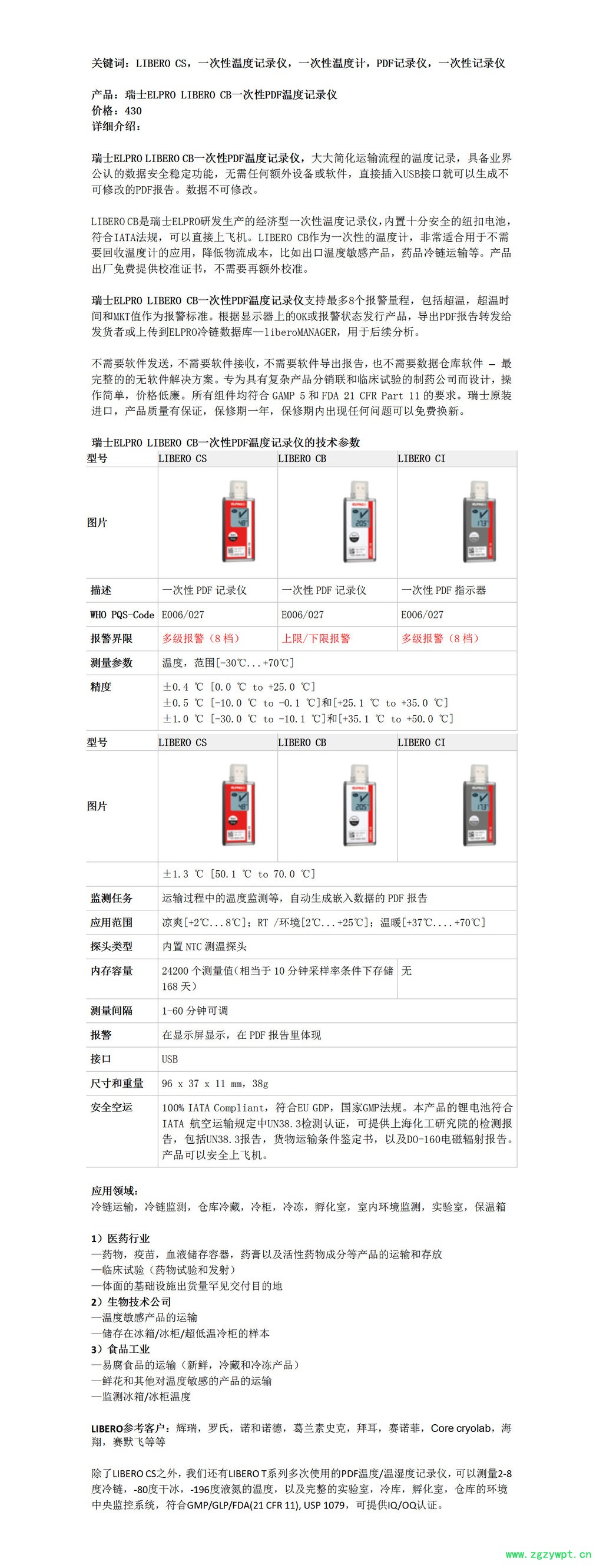 | 名称 | ELPRO LIBERO CB一次性PDF温度记录仪 |