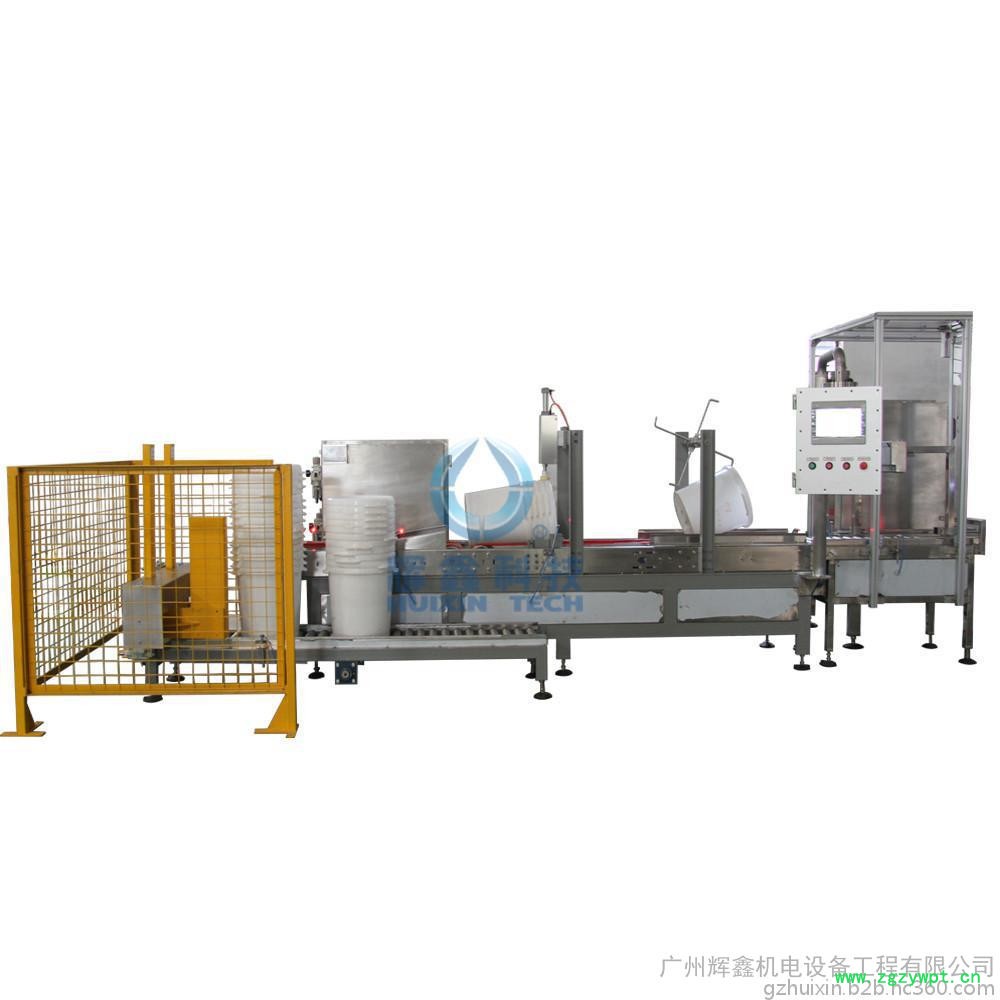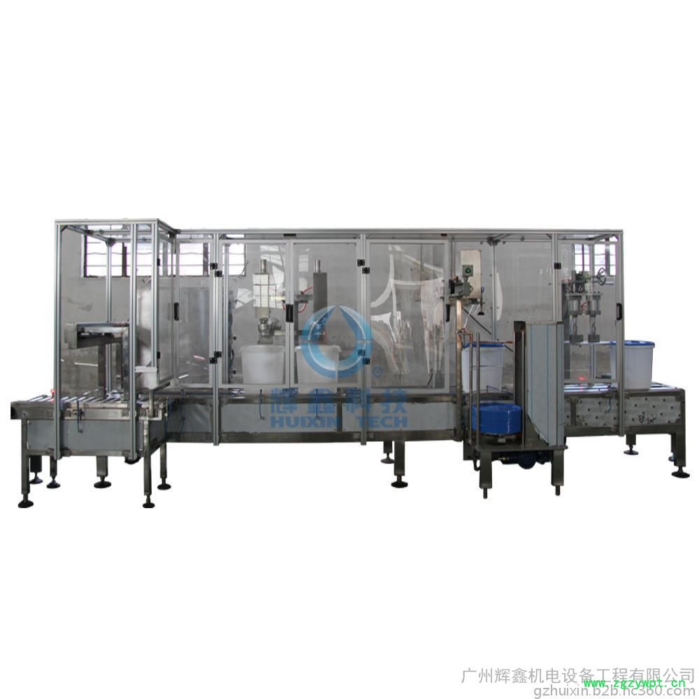 DCSZD30G2GY-BJ 灌装生产线,灌装高度可调,适合各种包装桶进行灌装,步进式自动输送,双头灌装安全又轻松,人工放盖,自动压盖;二速灌装“快&准”稳定性好;灵活的罐装方式能够有效的提高灌装速度,减少损耗,节约成本,减轻工人的工作压力。